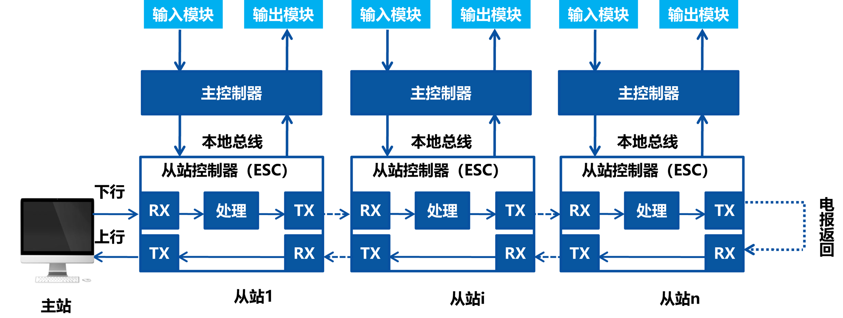 ▲典型基于 EherCAT 的分布式测控系统从站结构